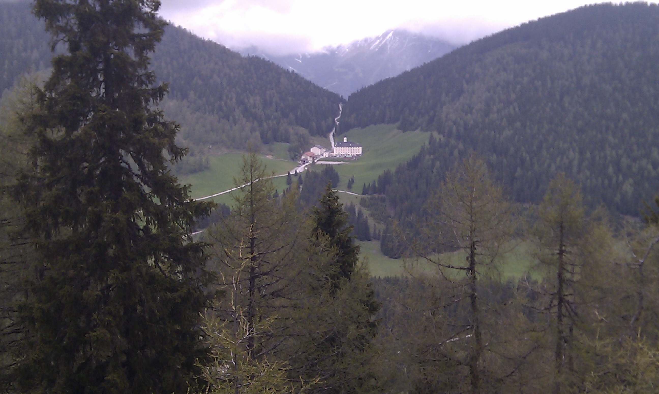 Von Matrei am Brenner aus geht’s nach Obfeldes, dort lasse ich mein Auto stehen, schnappe mir meine Kohla Wanderstöcke und marschiere los Richtung Antoniuskapelle. Das Tempo war wohl ein bissi zu hoch; darum geht’s nach einer kleinen Verschnaufpause weiter recht steil zu den Lärchenwiesen. Der Blick schweift immer wieder durch das Geäst hinunter ins Tal, welches durch den Regen der letzten Wochen in einem satten Grün strahlt. Kreuz und quer über die Wiesen erreiche ich, die Zunge bis zum Boden hängend, einen traumhaft schönen Grad und erblicke die bekannte Walfahrtskirche Maria Waldrast (1.638 m).