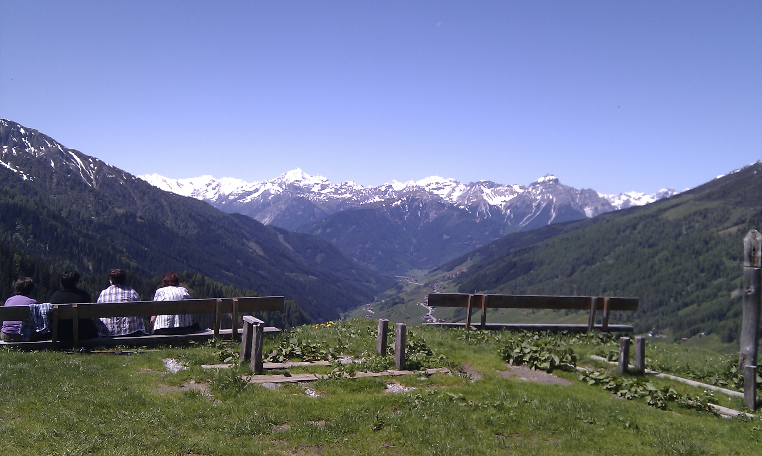 Nach einen kurzen Smalltalk über Gott und die Welt mit drei deutschen Wanderern, welche schon seit 22 Jahren jedes Jahr nach Navis kommen, sattle ich mein Bike noch ein allerletztes Mal und „gönn“ mir den Schlussanstieg. Ich muss aufpassen, dass sich meine heraushängende Zunge nicht in den Speichen verfängt, dennoch ist das Ziel, die Stöcklalm (1.880 m) nach ein paar Minuten erreicht. Erleichtert bewege ich meinen in der Zwischenzeit schmerzenden Hintern in die Küche, bestell mir Schnaps, Bier Hollersaft und Kasknödel und genieße die Aussicht; raus aus Navis fixieren meine Augen die Stubaier Alpen, von den Schlicker Kalkegel, über die Serles, dem Kirchdach, dem Habicht bis hin zum Zuckerhütl und dem Feuerstein.