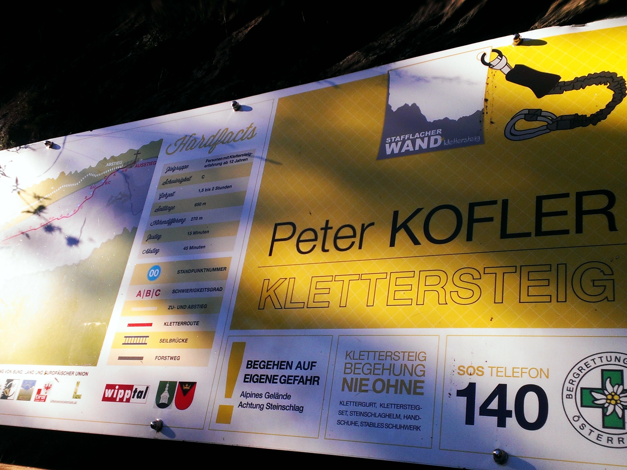 Es war eigentlich nicht geplant, dass Peter Kofler, der ehemalige Bergrettungschef aus Gries am Brenner, der Namensgeber des Klettersteiges wird, aber nach seinem tödlichen Alpinunfall im letzten Sommer wurde seinem jahrelangem Engagement für die Bergrettung und seinem Einsatz bei der Schaffung des Klettersteiges Tribut gezollt und der Steig nach ihm benannt.