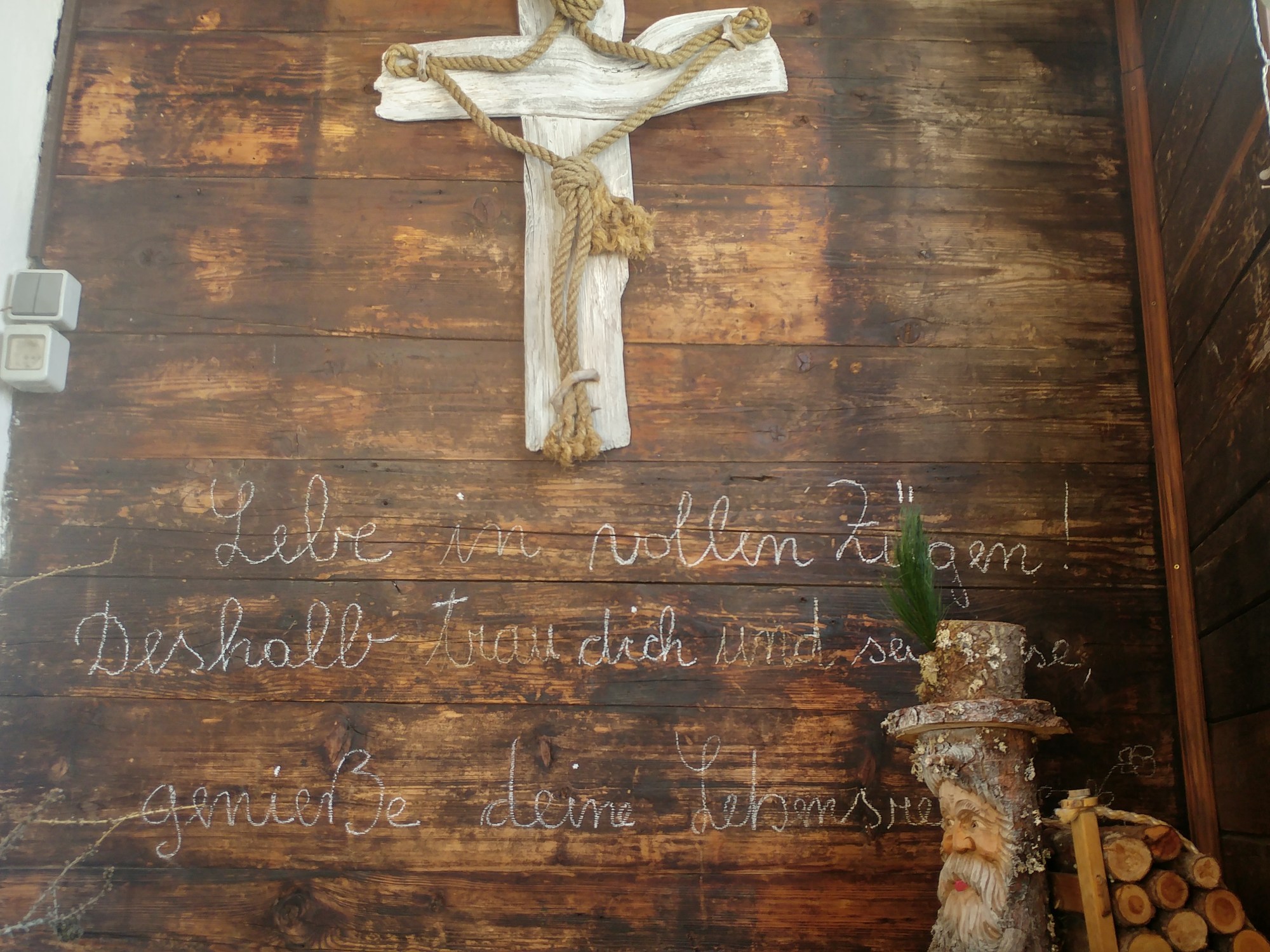 Wir lassen das Auto stehen und folgen der Rodelbahn Richtung Süden; die Beschilderung weist uns den Weg und wir stapfen durch etwas pulvrigen Schnee durch den Wald querein – immer wieder die Rodelbahn bis wir nach knapp einer Stunde und rund 500hm die Hühnerspielhütte erreichen.